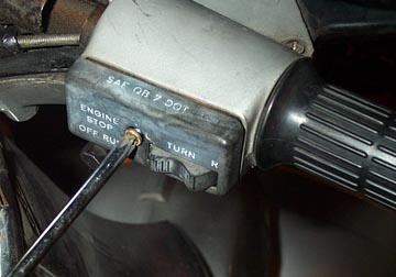 Remove the headset top by removing the 4 screws from the underside of the headset. Carefully loosen the speedometer connection to the speedo to free the headset top so it can be lifted away from the bottom, but don't disconnect any wires.