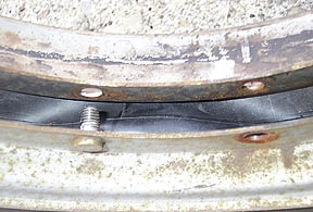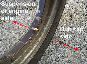 Below is a shot of the correct way a Vespa rim should be mounted to be sure the wheel will be centered properly. If it reversed the wheel will not fall on the centerline of the bike.
