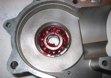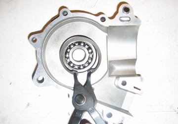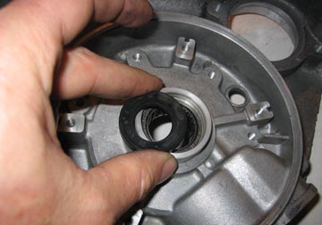 bearing. The new flywheel bearing is placed into the casing from the