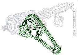 This is where the Lambretta gearbox is more flexible then the Vespa gearbox. Both the clutch bell and the crank sprocket can be changed independently of each other. A special chain will have to be used if you vary from the 47/18 GP200 set up or the 46/15 of all the other models. Companies like WCLW sell chains with extra links in them to accommodate almost any variation of front and rear sprockets. They also sell aftermarket front sprockets ranging from 13 to 22 teeth. The Standard Gearbox